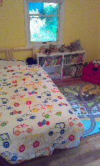 It's official: Peregrine is a big boy. Yesterday we made the trip down to IKEA to get him his new big boy bed. When we got home he helped papa pit it together, and last night he snuggled down in hos new blanket and slept all night no problem. How time flies!